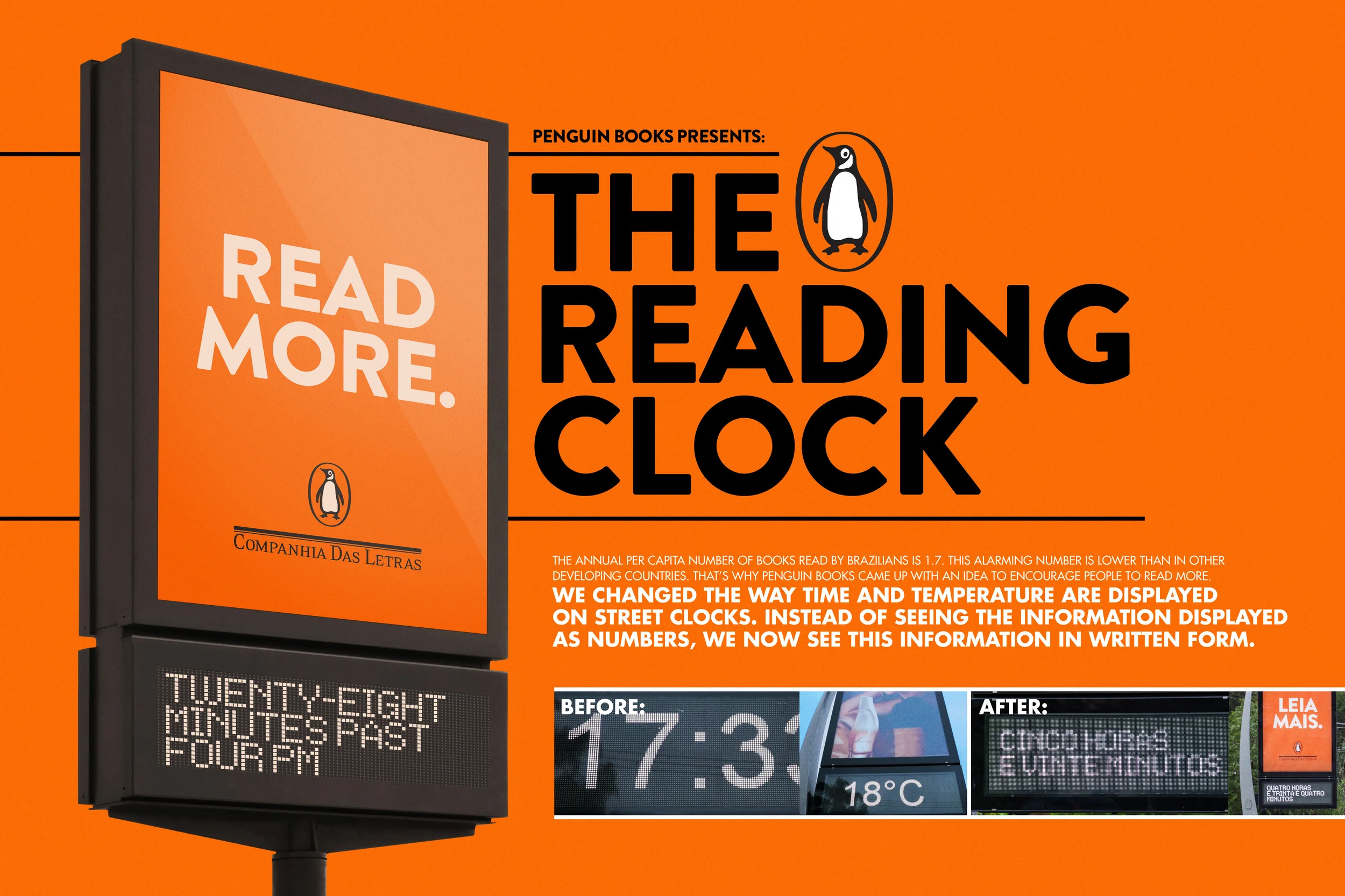We have changed the way viewers relate to street clocks to encourage them to read. By transforming what was written as numbers into their standard form, we helped push reading into more of a habit - as it should always be.